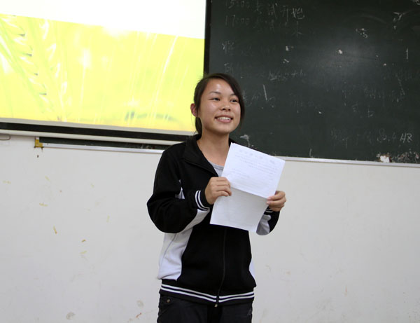 在与同学们进行互动交流过程中,赵总与同学们分享了“百丽雅”的成长历程,就当前美容行业的现状与发展前景进行了深入浅出的讲解,同时希望同学在夯实专业基础、掌握专业技能之余,加强学习中医养生学、营养学、心理学等方面的知识,为今后走上美容行业之路奠定基础。借此机会,“百丽雅”订单班学生通过口头、视频等方式向赵总汇报和展示了入学以来在校期间学习与生活的成长历程,覃姜仁和梁婷同学还分别代表获得“百丽雅”奖学金、助学金的同学面对面向赵总宣读了感恩信。看到同学的成长,赵总万分感动,并给予了同学们高度肯定和赞许。