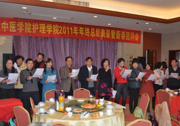 1月14日,护理学院隆重召开2011年年终总结表彰暨新春团拜会,护理学院党政领导、全体教职工及离退休老同志等一起欢聚一堂,喜迎新春。