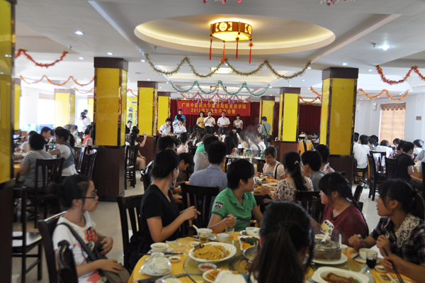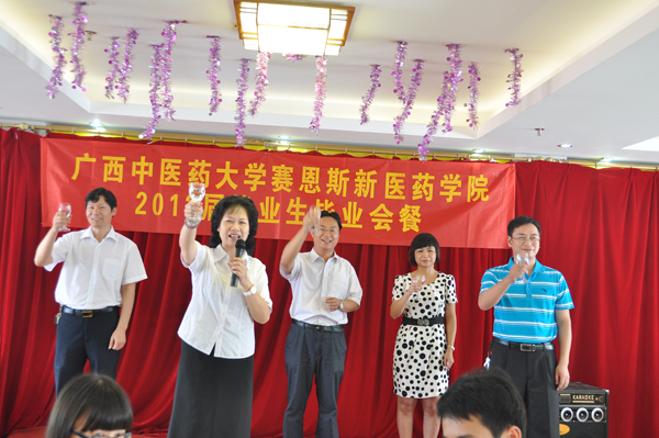 火红五月,也到了2012届毕业生即将离校的时间。今年,赛恩斯新医药学院有573名毕业生,2012年5月17-18日,赛恩斯新医药学院举行了2012届毕业生毕业聚餐活动。赛恩斯新医药学院常务副院长谢丽莎、党总支书记徐方明、副书记兼副院长梁天坚、副院长杜惠娟、叶绘晟,全体中层干部、毕业班辅导员和全体2012届毕业生参加了聚餐活动。
