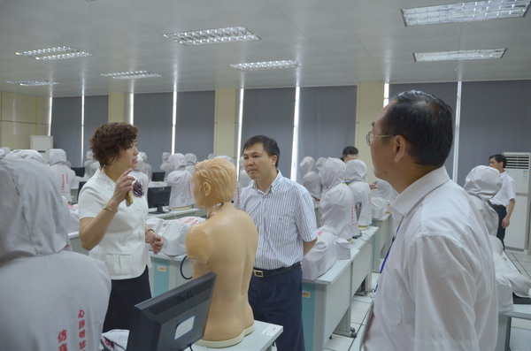 领导们检查作为赛点的护理实训中心