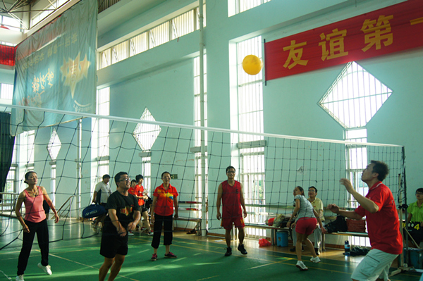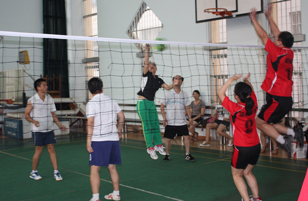 体育部、外语部等9个代表队近100名师生参加了比赛。赛场上气氛浓烈,队员们齐心协力、互相配合、顽强拼搏,赛出了友谊,赛出了风格。场上精彩的扣球、吊球、救球、发球,还有扣人心弦的反败为胜的场景,赢得观众一阵阵热烈的掌声,笑声和欢呼声展示了教职工团结和谐、积极进取、奋发向上的良好精神风貌;通过比赛大家增进了友谊,锻炼了身体。最终,体育部代表队获得冠军,外语部代表队获得亚军,成人教育学院代表队获得季军,图书馆代表队获得第四名。