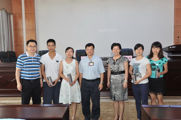 韦艾凌副院长、党办周广林主任及黄彬书记给毕业生党员赠送纪念品