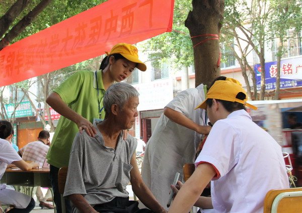 7月11日上午,为了配合此次调研活动,实践队在隆安县县城中心的农贸市场进行义诊活动,广西名中医黄颖教授、留学归国医学硕士曾旭老师坐诊,大学生们也用自己学习过的知识,热情为群众量血压、艾灸、推拿按摩。洋溢着大学生热情服务人民一片情意,让更多隆安群更加感受到星空彩票老版本下载的爱意!在同学们相互帮助和共同努力下,顺利和高质量的完成了将近500份的问卷调查。