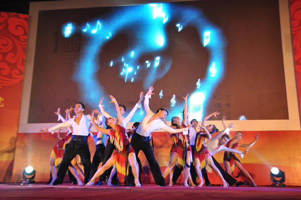 晚会分为“青葱岁月”、“激情飞扬”、“唱响未来”三个篇章。晚八时整,在激情洋溢的欢呼声中,艺术团舞蹈队的《让我们舞起来》为晚会拉开了帷幕,表达了对赛院十岁生日的祝福和对四方宾朋的热情欢迎;教职工的配乐诗朗诵《十年赛恩斯》,全面回顾了赛院的发展史,表达了赛院师生在建设美好校园中的激情与豪迈以及对赛院未来发展的信心;全体教职工演唱的《美丽的赛院我的家》,洋溢着对赛院的热爱之情;女生独唱《阳光路上》,则充分表达了赛院自建院10周年来的光辉历程及对未来美好前景的坚定信念,展现了铸就恢弘蓝图的坚定决心。活力四射、振奋人心的啦啦操《青春style》、街舞《本草纲目》,舞蹈《踏歌起舞》、《高原红》,歌伴舞《青春纪念册》、《相亲相爱》等都获得了阵阵掌声,青年教职工的舞蹈《最炫民族风》将晚会再次推向了高潮,现场掌声如雷。