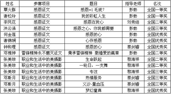 附设中医学校师生在第九届全国中等职业学校文明风采竞赛中荣获佳绩 来源:附设中医学校 作者:彭勃 日期:2012-11-28 点击数: 次 分享到: 2012年6月,附设中医学校根据广西壮族自治区教育厅关于组织参加第九届全区文明风采竞赛文件精神,认真组织学生参赛,在全区的比赛中取得了骄人的成绩。其中部分作品选送参加第九届全国文明风采竞赛,经过激烈角逐,参赛作品喜讯频传。 以下为附设中医学校学生在第九届全国文明风采竞赛中荣获的奖项: 打印正文 关闭本页