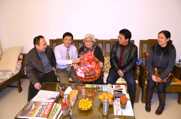 在2013年新春佳节来临之计,1月16日下午,护理学院党委书记冼锦华,副院长黄勇带领校办、工会负责人,亲切看望慰问部分离退休职工,为他们送去慰问品,给他们带来诚挚的关爱和温暖。每到一处,冼书记等人都关切询问离退休职工的身体健康状况以及离退休后生活情况,并祝他们新年快乐、幸福安康,慰问中,冼书记充分肯定离退休职工为学校的发展奠定的基础,诚恳地征求他们对学校的意见和建议。他们也高度评价学校发展所取得的成绩,感谢学校领导对离退休职工的关心,并表示,相信在新一届领导班子的正确领导下,学校的各项事业一定会有更大的发展,取得更辉煌的成绩。