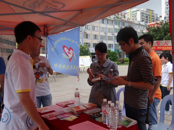 本次宣传活动围绕“贫困母亲募捐”这个大主题开展,还穿插了“预防艾滋病,健康全家人”和应急急救知识宣传两个小主题。赛院志愿者协助青秀区红十字会通过设点宣传、发放传单、海报展示等3种方式宣传。志愿者们顶着炎炎烈日,依然面带微笑着向过往的群众发放宣传资料,耐心地为前来咨询的群众讲解,同时还现场讲解演示了急救知识。