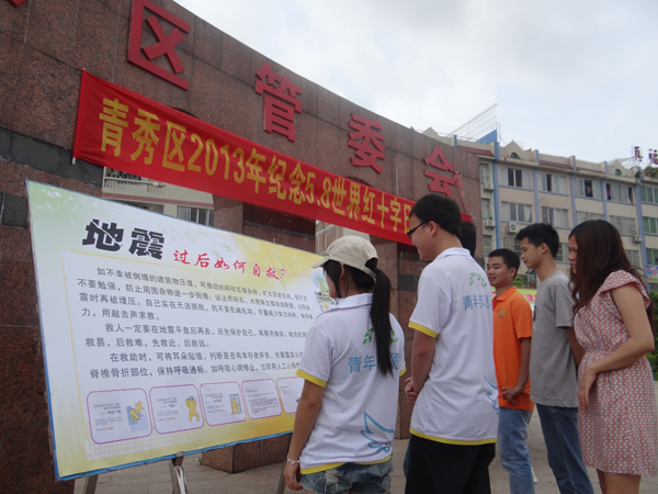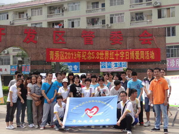 5月8号是世界红十字会日,为了纪念世界红十字会日并开展博爱周活动,2013年5月8日上午,由青秀区妇女联合会、青秀区红十字会联合主办的“携手博爱援助—关爱贫困母亲在行动”贫困募捐活动在东方广场举行,仙葫开发区团工委书记施玉萍、赛恩斯新医药学院团委副书记谭入铚,学工处老师蓝帜以及赛院50名志愿者与青秀区红十字会志愿者参加了本次活动。