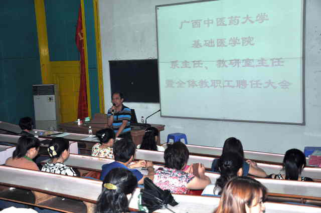 2013年5月22日下午,基础医学院在西梯一教室召开学校首批系主任暨全体教职工聘任大会。