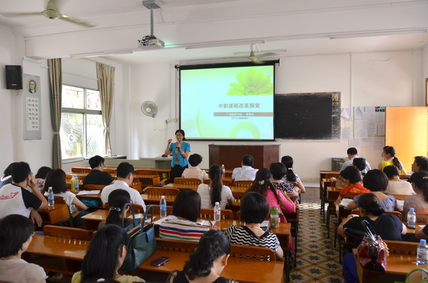 此次培训邀请了广西师范学院黄艳芳教授作了题为《中职课程改革和教改立项设计》专题讲座。从课程改革的理念、课程开发和课程实施三方面进行阐述,提出教师要做到“有效教学”和“让学生真正学起来”,打造职业教育的品牌课程,还就中职教改立项项目申报作了专题辅导。培训班还安排了本院参加中职骨干教师国家级培训和赴台湾、日本学习考察的三位教师的学习考察汇报和专题讨论,同时也对兄弟学校南宁市卫生学校进行实地考察。