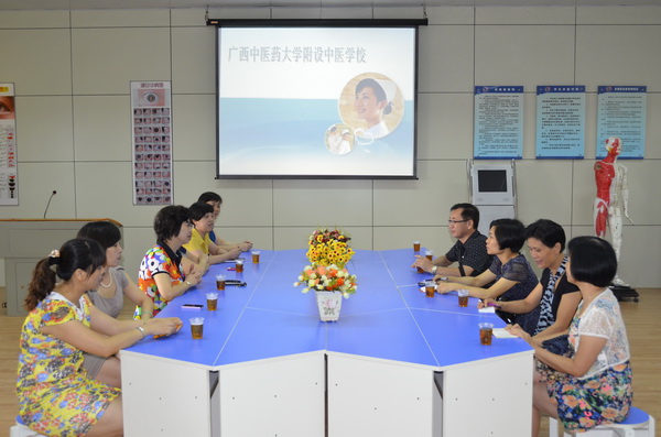 2013年7月11日,广西玉林市卫校戚林副校长一行4人莅临星空彩票老版本下载附设中医学校参观交流。附设中医学校吴彬校长、马秋平副校长及相关部门的负责人出席了本次交流座谈会。
