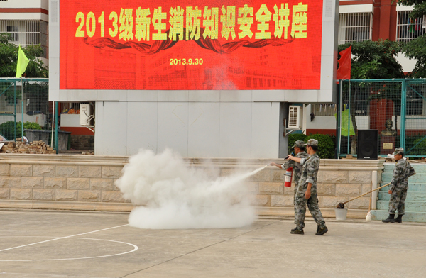 为切实做好赛院的消防安全工作, 增强师生掌握消防逃生和灭火技能,保障师生的生命安全,9月30日下午,赛院在2013级新生军训期间组织开展消防演习。赛院杜惠娟副院长、叶绘晟副院长出席演习大会并进行了现场指导,各新生班级辅导员、后勤保卫处相关人员以及2013级全体新生共计2300余人参加了此次消防演习。