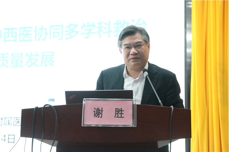 一附院院长谢胜作题为“聚力急危重症疑难疾病中西医协同多学科救治,助推医院高质量发展”的报告