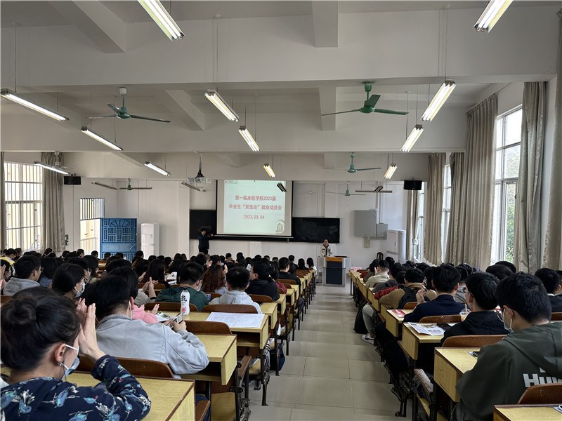 3月4日下午,第一临床医学院2023届毕业生就业动员大会在明秀校区东梯一教室召开。学校招生就业处处长肖华业,百色市卫生健康委主任黄再波,学院党委副书记、副院长钟远鸣,百色市卫生健康委副主任、中医药管理局局长张军及百色市卫生健康委办公室、人事科、各医疗机构负责人等31人,学院全体辅导员,2023届毕业生共计245人参加了本次动员会。会议由罗之瑜主持。