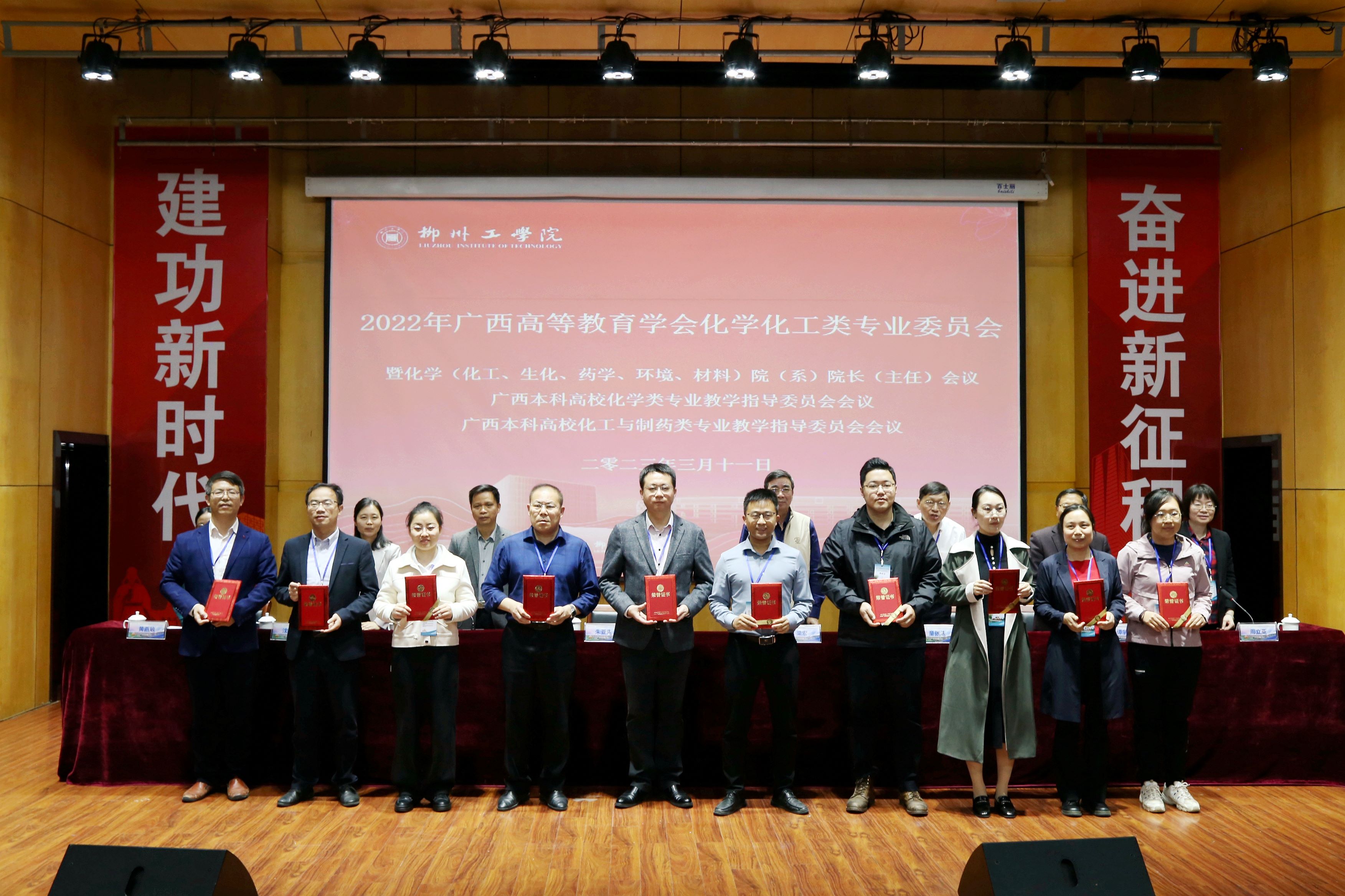参会代表为我校领取了优秀组织奖的荣誉证书与13项学生获奖证书,其中广西高校第二十三届化学化工类学术创新成果竞赛中获得一等奖1项,二等奖4项,三等奖4项,第十一届广西大学生化学实验技能竞赛中获二等奖1项,三等奖3项。