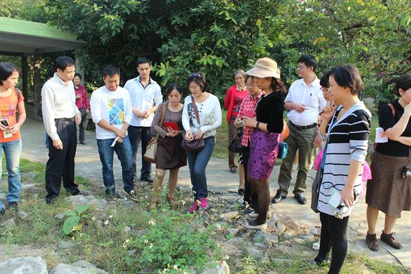 为了加强瑶医药学院和瑞康医院南城分院职工的中草药业务知识学习,同时促进双方职工学习党员走群众路线的工作交流, 10月25日下午,瑶医药学院与瑞康医院南城分院全体职工在广西药用植物园进行党员走群众路线暨中草药知识学习活动联谊。