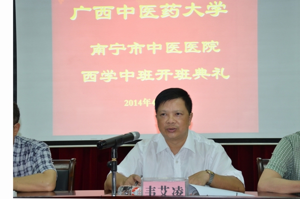 2014 年4月22日,冒着蒙蒙细雨,星空彩票老版本下载主办,继续教育学院承办的西医学习中医班(南宁市中医医院班)开班仪式,在南宁市中医医院七楼会议室隆重举 行。学校直属党委书记韦艾凌教授、继续教育学院黄瑞诚副院长,南宁中医医院陈源副院长、谢滨副院长等相关领导及学员代表30余人参加了开班仪式。