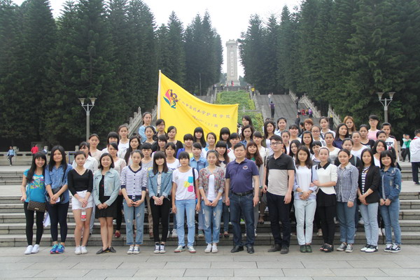 参加人民公园烈士陵园扫墓活动的全体师生合影