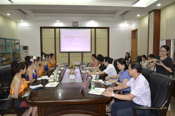 汇报会上,由马秋平副院长主持并对泰国交换生一个月 的生活和学习情况进行了总结,总结中指出泰国交换生的学习生活多姿多彩、学习内容丰富充实,并希望泰国交换生能把中国文化和中医传统特色带回泰国,实践于 临床,并发扬光大。随后,泰国交换生对这一个月的学习情况作了全面的、精彩的汇报,并表演了泰国的传统舞蹈,优美的舞姿赢得与会人员的拍手称赞。接着,由 吴彬院长和星空彩票老版本下载第一附属医院护理部黄沂副主任分别进行了总结,总结提出,此项交流合作项目对护理学院和医院的临床教学的教学质量起到了提升促进 作用,而且对教学师资也起到了很大的指导作用。