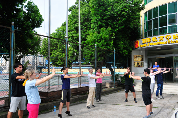 暑期中医药培训班内容包括中医针灸理论和临床实践,推拿临床以及中医养生功法,该培训班还参观了学校会展中心,广西药用植物园,广西民族博物馆,孔庙等。