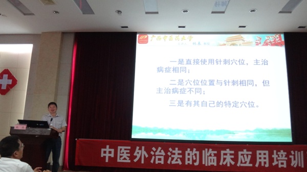 我校壮医药学院院长林辰教授应大会邀请参加了本次会议,并在大会上就国家非物质文化遗产名录“壮医药线点灸疗法”进行了专题讲座。林辰教授系统详实地介绍了壮医药线点灸疗法的起源、技术规范、操作要点、临床应用等内容,并现场进行了壮医药线点灸疗法演示。林辰教授临床经验丰富,不时引用临床医案佐证壮医药线点灸的神奇疗效;讲课幽默风趣,互动性强,激起了学员们浓厚的学习兴趣!课后,学员们针对壮医药线点灸疗法的临床应用,踊跃向林教授提问,林教授就学员们提出的各个问题进行了逐一解答,赢得了学员们一次又一次的热烈掌声!