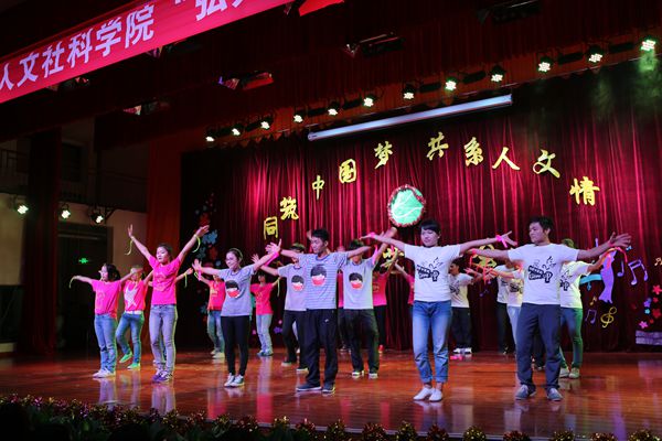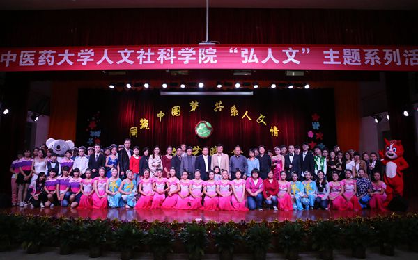 2014 年11月25日,以“同筑中国梦 共系人文情”为主题的人文社科学院文艺晚会在仙葫校区成功举办,参加晚会的嘉宾有校党委副书记董塔健教授、学生工作处肖华业处长、校团委王春花书记、校团委杨删副书记、药学院党委李豫萍副书记等。人文社科学院党总支书记李怀泽、院长韦兆钧、副院长王碧艳以及全院师生共计 500多人参加了晚会。
