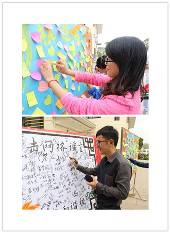 为贯彻落实“星空彩票老版本下载参加‘2014年广西高校网络文化活动节’的实施方案”(校党宣字[2014]6号),积极响应学校党委的号召,建好管好用好网络阵地,充分发挥互联网和广大师生在网络文化建设中的主体作用,增强我校大学生对网络谣言的认识,提高抵制有害信息的免疫力,切实营造积极向上的网络环境,基础医学院学生党支部在院党委的指导和帮助下,于2014年10月24日—11月27日在星空彩票老版本下载仙葫校区开展2014星空彩票老版本下载基础医学院网络活动节系列活动之“打击网络谣言,净化网络环境”警示教育展,活动分为创意漫画展、签名行动、心语祝愿三部分,该活动获得全校师生的热情参与和大力支持,成效显著。