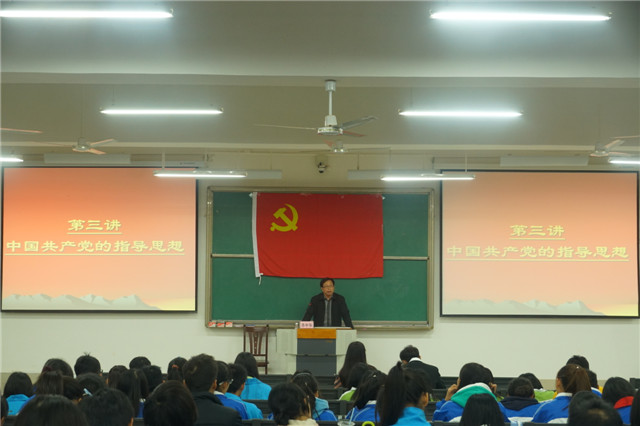 李中华部长从四个方面向同学们生动阐述 “党的指导思想”,他说,“旗帜就是方向,旗帜就是对于整个社会历史发展规律的基本认识,是党的全部理论观点和价值体系的集中体现,也是中国共产党带领中国人民艰苦奋斗,建立新中国、进行改革开放、实现中华为民族伟大复兴中国梦的行动指南,而这面大旗正是‘中国共产党党的指导思想’。”党的指导思想随着中国革命、改革和现代化建设实践的发展而发展,内涵越来越丰富,她是实现中华民族伟大复兴“中国梦”的行动指南。李中华老师从多角度进行深入浅出的分析和阐述,讲解全面,生动具体,引领同学们学习党的指导思想,并进行深入思考,融会贯通,给同学们以思想的洗礼,提高了政治觉悟和理论水平,为早日加入党组织打下了良好的思想基础和理论基础。
