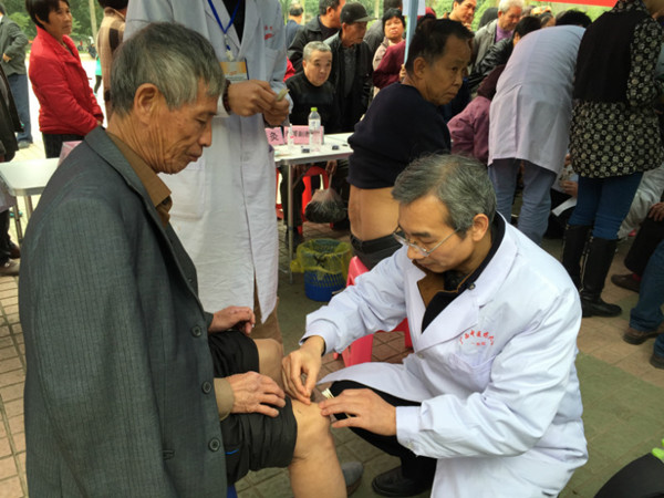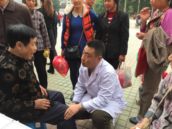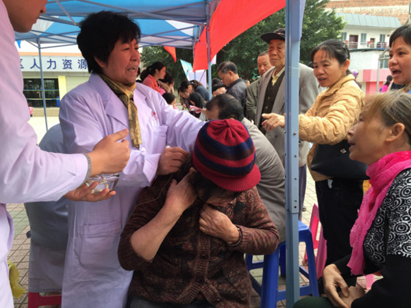 志愿者给群众治疗