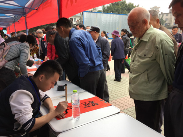 志愿者为群众写春联