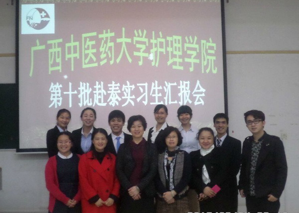 2015年3月24、27日晚,护理学院第十批赴泰实习生汇报会分别在明秀校区西梯三教室和仙葫校区1-307教室隆重举行。护理学院院长吴彬、党委副书记罗艺徽、副院长马秋平,教务科、各专业部和学生工作办公室的老师们及护理学院各班级学生参加了汇报会。