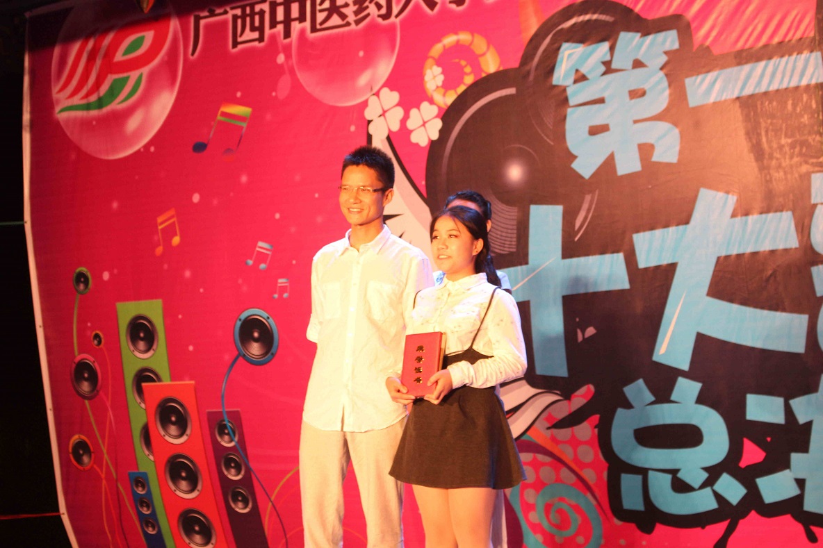 怀揣着青春的希望和梦想,选手们轮番登场,舞台上下掀起了一股充满青春的热潮风。学院音乐协会带来的助阵开场秀《王妃》以及第一位选手《致青春》的音乐响起,激烈的比赛拉开序幕,台下同学们热情高涨,挥舞着手中的荧光棒为台上选手加油鼓气!《等不到的爱》、《知足》等一首首悦耳动人的歌曲也引得台下阵阵欢呼。现场有搞笑逗人的小游戏互动,还有礼仪队带来的《礼仪之邦》表演。在整个比赛过程中,选手们的充分准备,动人的倾情演绎,赛出了水平,赛出了风格。最终经过评审团和大众评委投票,来自2014级针灸推拿2+3班的选手欧祝均同学获得了本次大赛的冠军及最佳人气奖。赛后各位评委老师对本次比赛做出来精彩的点评并为选手们颁奖。