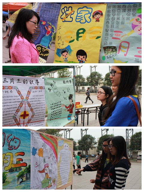 同学欣赏海报并参与三月三民俗知识有奖答题活动