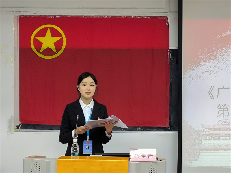 学院学生团总支学生会执行主席杨晓佳作题为“学习党的二十大精神,踔厉奋进新征程 坚定不移跟党走,争做时代新青年 谱写新时代学生会工作崭新篇章”的报告。报告总结了一年来在院党委和院团委的指导下,在学院各班学生工作人员的共同努力下,学院学生会在政治思想教育、党史学习教育、文化建设等方面所取得的经验与成果,并对下一阶段的工作作了展望。