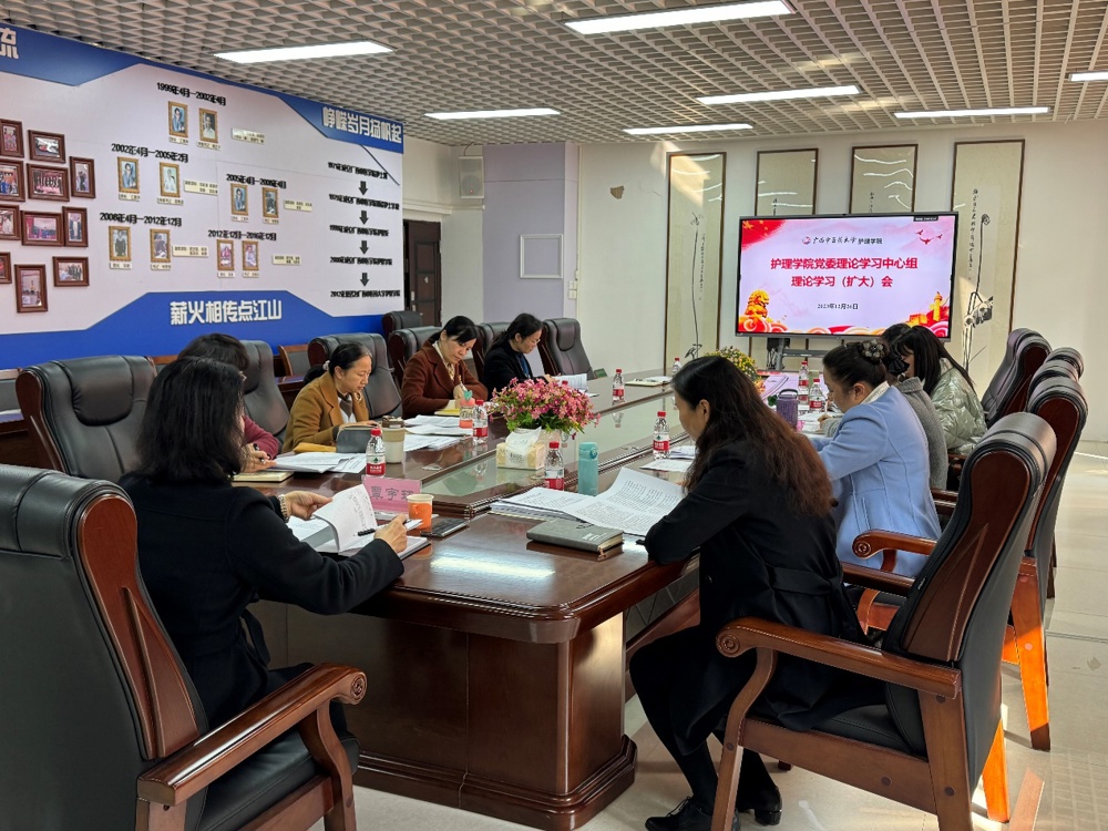 12月26日下午,护理学院党委在自诚楼护理学院C503召开党委理论学习中心组学习(扩大)会议,专题学习习近平总书记对广西重大方略要求和习近平文化思想。自治区纪委监委驻星空彩票老版本下载纪检监察组组长、学校党委副书记、纪委书记覃宇环列席旁听指导,护理学院党委理论学习中心组全体成员及科级干部参加学习会。护理学院党委副书记韩叶芬主持学习会。