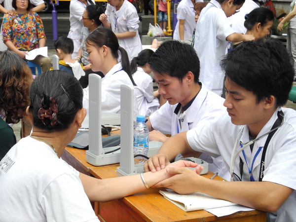 根据教育部《关于做好首届全国职业教育活动周组织工作的预通知》(教职成司函[2015]39号)文件精神,进一步贯彻社会主义核心价值观,弘扬严谨教学、培养实用技能型人才的职业教育理念,推动学校学生社团活动的蓬勃发展。2015年5月16日上午,广西中医学校在南宁市北湖小区开展义诊宣传服务活动。
