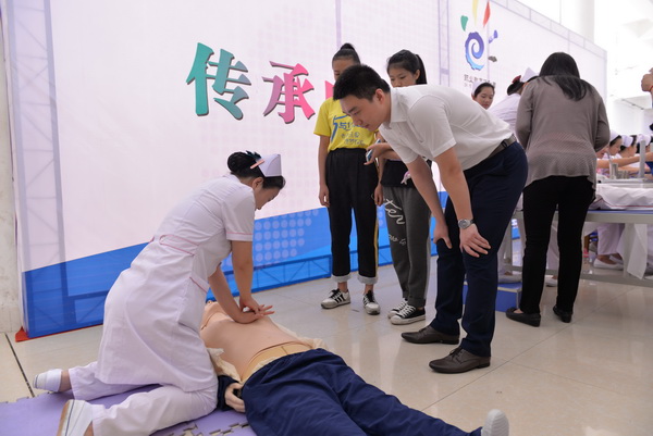 观众学习心肺复苏术