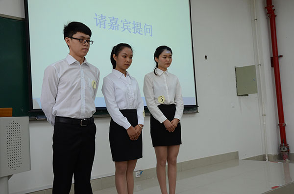 模拟应聘开始前,陈必存经理讲述了当前中医药的发展前景以及该公司的招聘要求等。2012级中药资源与开发班的同学积极参与本次模拟应聘,通过递交简历、自我介绍及个性PPT展示等方式进行应聘。其中,嘉宾对选手互动提问环节深受同学们喜欢。