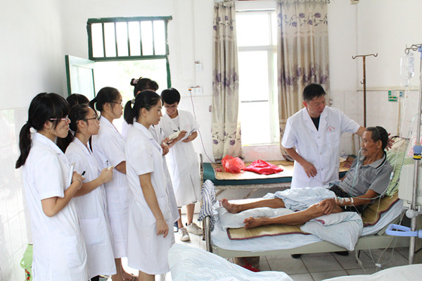 在这次活动中,带队老师和同学们通过“内科病房查房”、“中医科见习”、“观摩小针刀疗法”、“跟随广西名中医林辰教授义诊”、“实践壮医经筋手法和壮医针刺疗法”及向群众发放民族医药调查问卷等,增长了临床知识,拓宽了同学们的视野。在跟随内科张主任查房的过程中,同学们初步了解了住院病房常规的工作程序,学习了内科常见病的临床诊疗方法,真正接触了临床一线工作,学会了危重病人急救的措施和基本方法;在中医综合科见习的过程中,同学们熟悉了常见的针灸推拿、熏洗、刮痧、贴敷等技法,并将自己所学的壮医经筋手法和壮医针刺疗法应用于临床,为当地百姓服务,实现了真正的理论与临床实践相结合,加强了自身临床实践动手能力;在跟随广西名中医林辰教授义诊的过程中,同学们实习了望、闻、问、切四诊和临证处方用药的技巧,拓展了课堂知识,同时见证了壮医针刺的独特针法和神奇疗效;观摩了合浦县第五人民医院张雪院长的小针刀疗法,留下了深刻的印象,在目睹了小针刀疗法神奇的疗效之后,同学们无不惊叹张院长精湛的技术,同时也激发了自己要更加发奋努力学习,为患者解除病痛的信心。