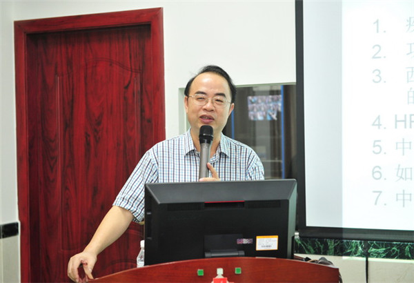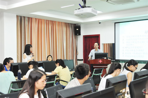 为了培养第一临床医学院中医学专业实习生的中医临床思维,提高他们自主学习的能力,2015年8月14日下午,第一临床医学院院长黄贵华在第一生活区教学楼四楼校外实践基地考试中心对48名中医学专业实习生开展了一次以“功能性消化不良”为专题的CBL教学(案例式教学)活动,现场气氛活跃,教学效果良好,受到了同学们的热烈欢迎。