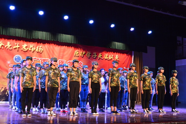 广西中医学校2015级新生军训晚会于9月7日晚在北湖校区大礼堂成功举办。学校党委副书记罗艺徽,军训教官、班主任以及一千三百多名15级新同学参加了本次晚会。