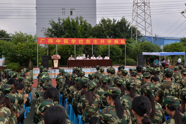 广西中医学校吴彬校长在开学典礼上对我校2015级新生的到来表示了热烈的欢迎,对他们今后的学习生活提出了“知行合一,德技双馨,梦想铸就未来;劳动光荣,创造伟大,技能成就人生。”的奋斗目标。她也希望同学们用青春理想、人生责任、生命热能去填充校园生活的每一个空间,让每一天都充满意义。用一个健全的身体,一颗高尚的心灵和出色的能力,担当起服务国家和民族的社会责任。学校教师代表在的发言中对同学们提出三个学会“学会做人、学会做事、学会学习”,并保证在今后的教学中以“诚信、严谨、敬业、博爱”为准则。新生代表表示会在以后的学习生活中积极进取,努力使自己成为一个合格的中医药学子,为社会、为国家作出自己应有的贡献。