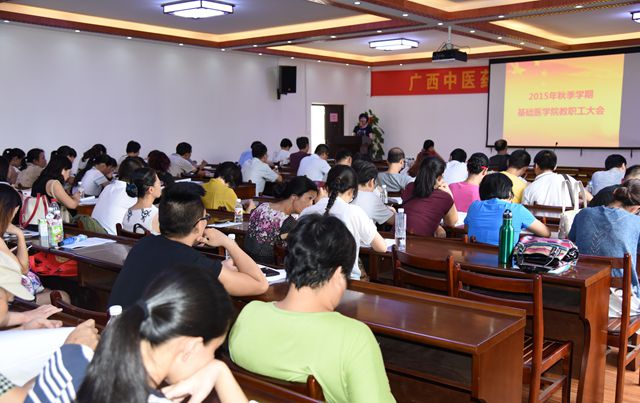 正值庆祝抗日战争暨世界反法西斯战争胜利70周年和庆祝第31个教师节之际,我们迎来2015秋季新学期的开学。2015年9月11日下午,星空彩票老版本下载基础医学院在仙葫校区基础医学院会议室召开2015秋季学期教职工大会,全体教职工参会。