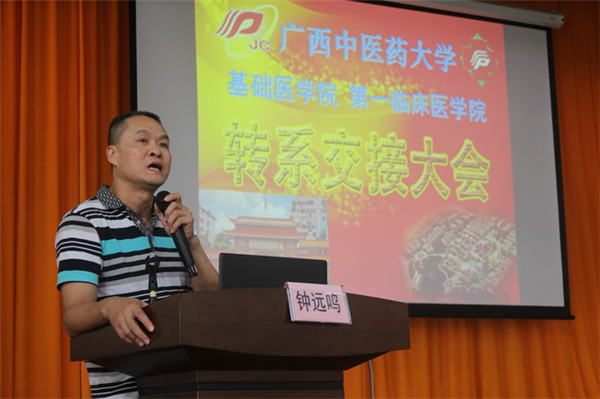 2015年9月10日,伴随着教师节,第一临床医学院、基础医学院2015年学生转系暨中医学专业认证知识宣讲会,于9月10日下午在仙葫校区大学生活动中心举行。第一临床医学院钟远鸣副院长、基础医学院龙春莉副书记、两个学院的学办负责人、全体辅导员老师及355名转院学生参加大会。