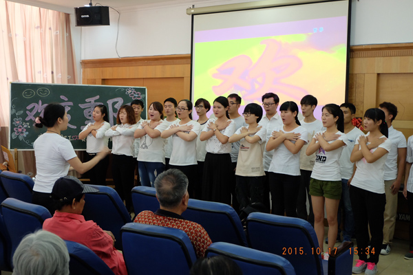 2015年10月17日,为迎我国传统敬老节日——“九九”重阳节,传承中华美德,弘扬敬老文化,赛恩斯新医药学院艺术团师生组成慰问团,赴学校明秀校区老年活动中心开展慰问活动,为离退休老干部献上一台的精彩的文艺演出,并发放慰问品,致以节日的问候。