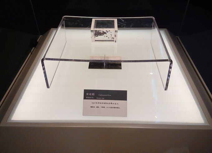 广西区博物馆内展出在那坡感驮岩遗址出土的炭化稻