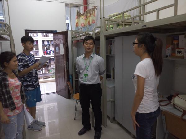 为了丰富药学院同学们的课余文化生活,展现药学院学子朝气蓬勃的精神面貌,凸显“风采宿舍,美化环境,文化育人,传承中医”的宿舍文化。2015年11月5日药学院团委书记、2013级年级主任王金兰及2015级年级主任管海钦参加评比并指导药学院团委学生会成员开展宿舍风采大赛评比工作。