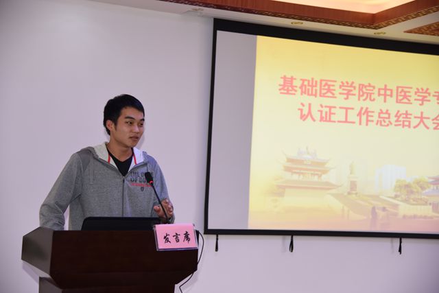 生理学教研室主任赵铁建教授、中医基础理论教研室主任蒋筱教授代表就如何组织开展教研室中医学专业认证准备工作谈了心得,2014级中医学专业杨磊同学也代表介绍了2014、2015级学生在中医学专业认证工作中的成长、收获及个人的体会。