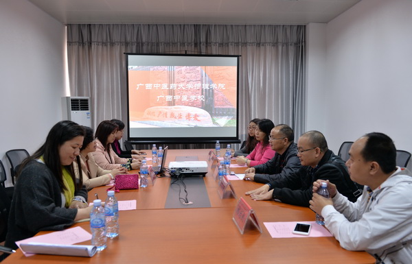 2016年3月18日,海口市中医药学校徐家正校长一行5人来访广西中医学校,受到广西中医学校马秋平副校长及相关部门负责人热情接待,早上实地考察了校办产业——广西重阳老年公寓,下午参观了位于北湖校区的实训中心,并进行了交流座谈。