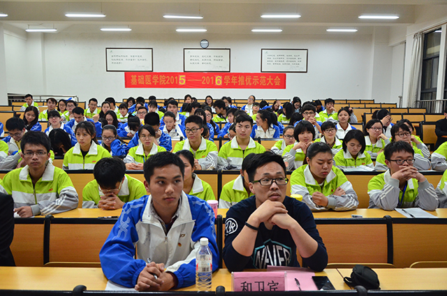 为了推荐优秀团员作为党的发展对象,为党组织输入新鲜的血液,响应党的号召,满足党事业发展的战略需要,同时为了各团支部的团支书更熟悉推优大会流程,推进我院推优工作的顺利开展,因此,2016年3月27日基础医学院团学团支部组织了基础各团支部代表在仙葫校区教学楼1-203举行了2015-2016学年推优示范大会,基础医学院团委副书记和卫宾老师出席了本次大会。